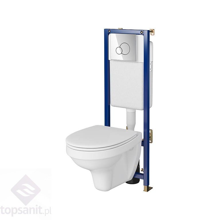 Zestaw Cersanit B596 Tech Line Base miska WC Delfi, deska, stelaż z przyciskiem chrom błyszczący - cechy produktu: